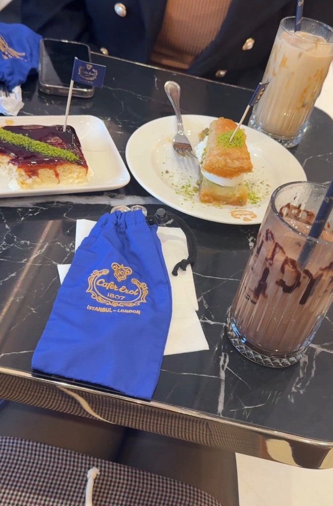 Right across the street from Harrods on Brompton Road, Cafer Errol felt like a hidden gem. I ordered a slice of baklava with ice cream, what was essentially a tres leches cake (I forgot the name) alongside a cup of their strong, aromatic iced coffee, and it was the perfect pick-me-up. The baklava was beautifully sticky and nutty, which paired so well with the ice cream, the cake was incredible, and the coffee had a deep, satisfying flavor that complemented it perfectly. A small spot with big flavor—don’t skip it.