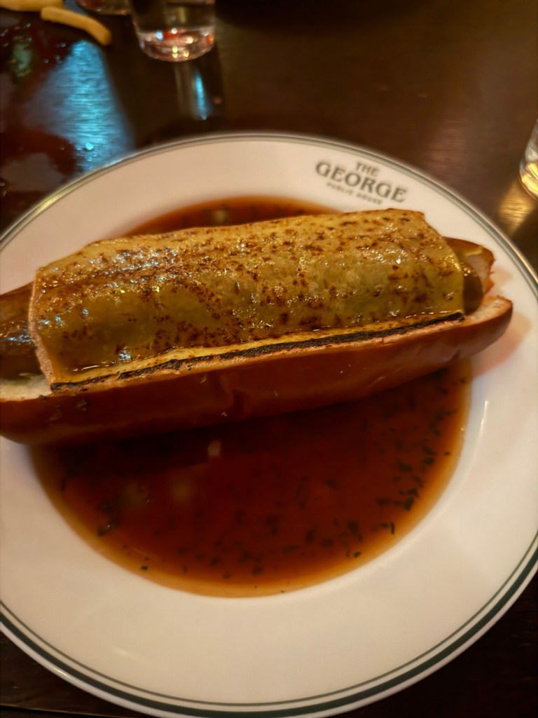 Tucked away in Fitzrovia, The George is a quintessential British pub with a modern twist. I stopped in for dinner and ordered the George Dog: (Ogleshield Cheese, Mustard, Pickled Cabbage, Guinness Gravy, Fries) for 22 pounds —and I’m so glad I did. It’s not your average sausage dog; this one comes packed with bold flavors and the generous helping of toppings elevate it from street food to something genuinely memorable. If you find yourself near Regent Street, this is a no-brainer.