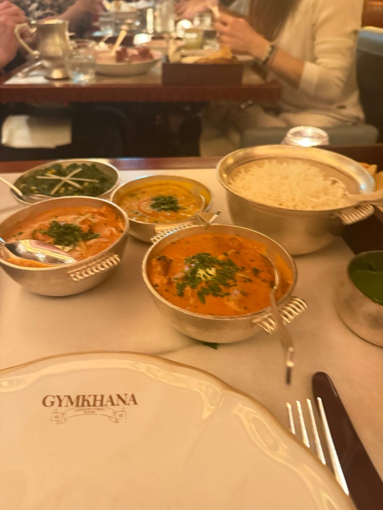 To round out the trip, I opted for the set lunch menu at Gymkhana, the Michelin-starred Indian restaurant and it completely blew me away. The meal began with a vibrant aloo chaat that was bursting with flavor and texture. From there, you choose your courses, and I went with the beetroot chops pao (a beautifully spiced, plant-based take on a classic street food snack) and the chicken butter masala, which was rich, creamy, and overall amazing. It came with perfectly steamed rice and naan—and let me tell you, I will dream about that naan forever. Fluffy, warm, slightly charred, and perfect for soaking up every drop of sauce. I paired it all with a refreshing pink gin and tonic that added just the right botanical kick to the meal. This was, without a doubt, the best Indian food I’ve ever had. It was enough food that my friend and I could have split it easily.