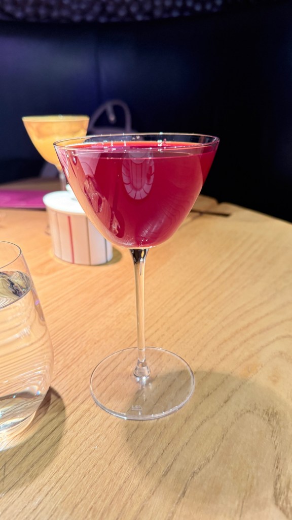 For my cocktail, I couldn’t resist the Delicious Purplicious—a vibrant mix of Sipsmith vodka, crème de mûre, apple, blackberry, rhubarb lemonade, and more. It was fruity, fizzy, and dangerously good.